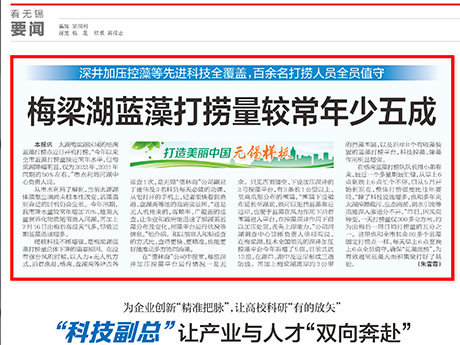 公司研發(fā)的加壓控藻船,以玻璃鋼船體為平臺,配置藍(lán)藻打撈、壓力控藻和曝氣裝置...